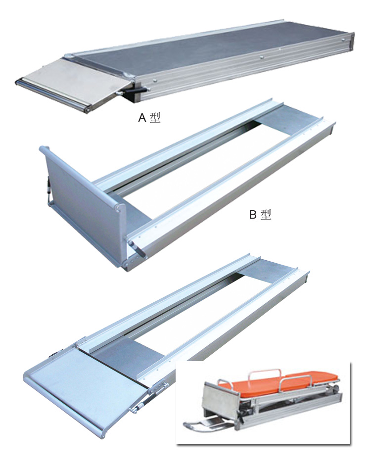 此擔架倉適用于救護車上使用,為方便救護車擔架上下設計制造的。