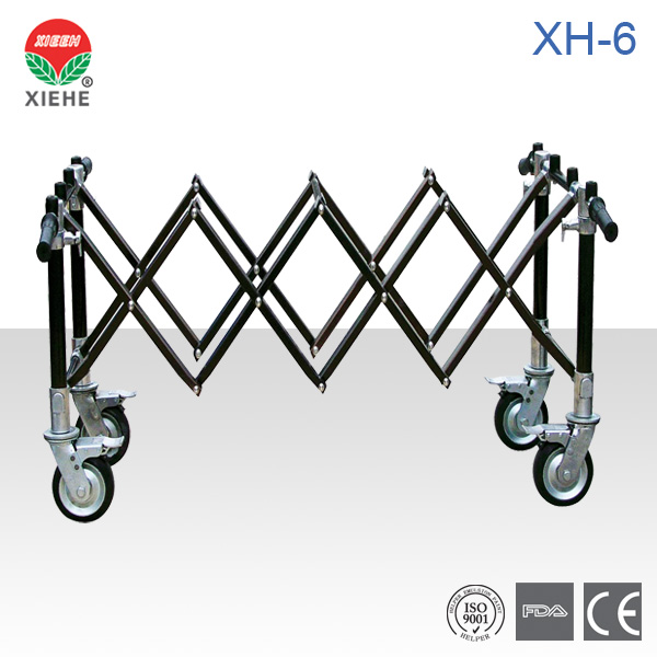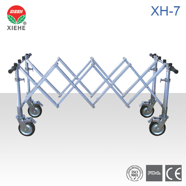 由堅硬的長方形鋁管制成,這款棺材架還在外表上加了一層電鍍,使它看上去更加光亮并且使它便于清洗。這款型號的棺材架還有方便折疊和裝運的把手。這就要求這款棺材架有配套方便的地盤和折疊裝置使得它在樓梯的搬運和墓地的運輸方面都相對的方便。在棺材架的四個輪子上都有剎車裝置,使得它可以承擔較大范圍的棺材尺寸。另外增加的長度使它的穩定性加強了,并且使外表更有客觀性,有5款腳輪可供選擇。